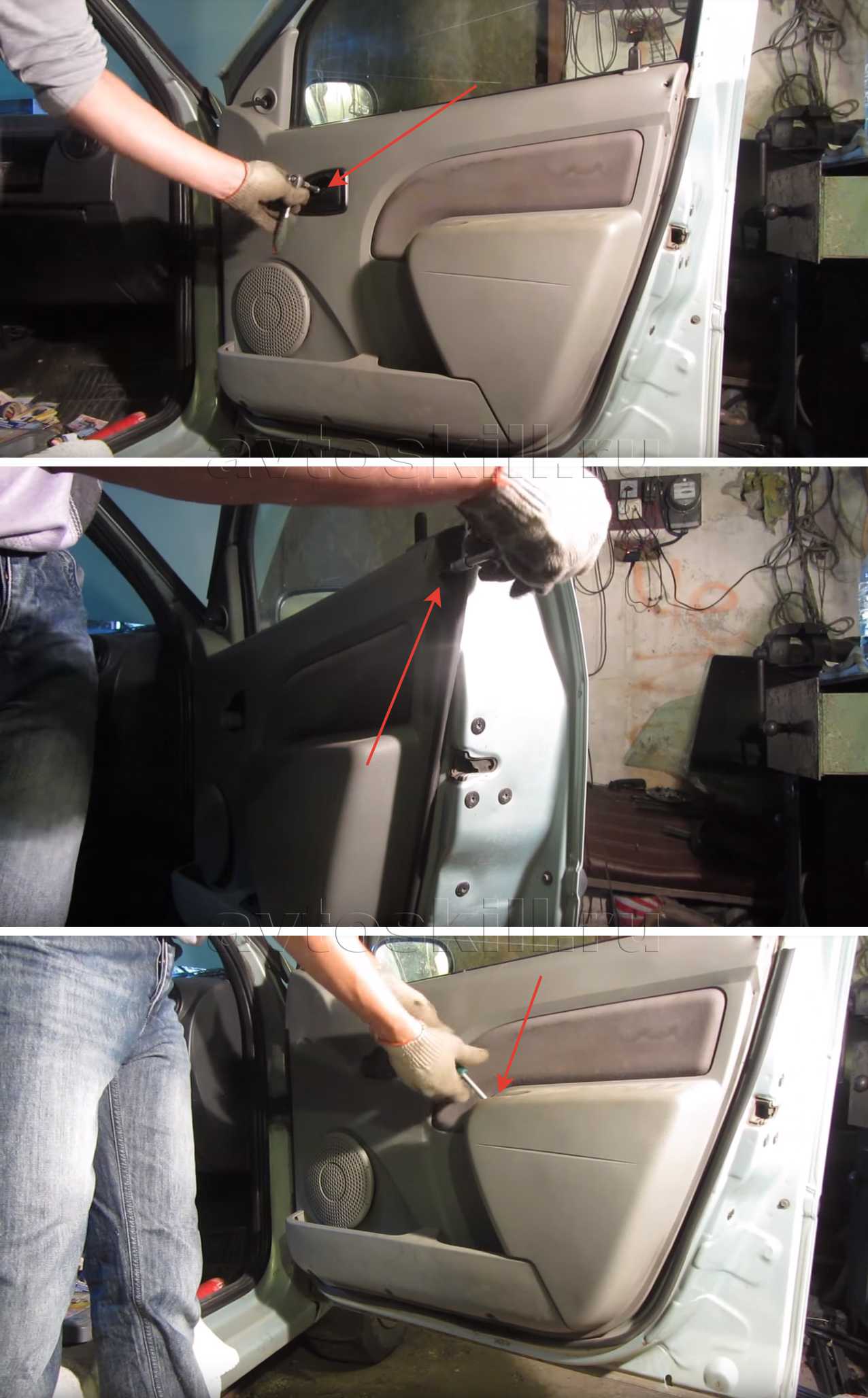 Работа выполняется аналогично на передних и задних дверях.