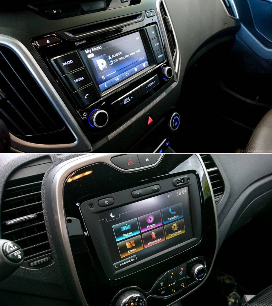 Если сравнить салоны Рено Аркана и Хендай Крета в целом, не обращая внимание на детали, то оба интерьера выполнены в сходной стилистике. В каждом из случаев на своих местах присутствуют:. мультимедийный экран;