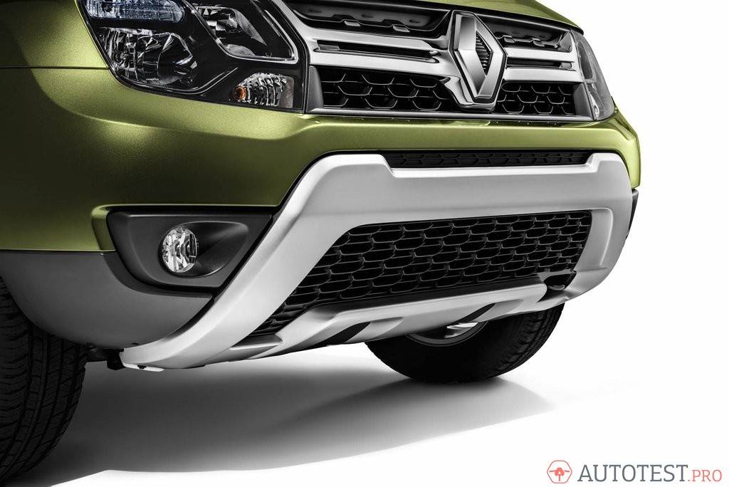 Рено Дастер имеет хорошие внедорожные способности, что сыграла определенную роль в оформлении автомобиля. Кузов французской модели дополняется массивной защитой переднего и заднего бампера, что делает кроссовер похожим на компактный внедорожник. В пользу такого сходства свидетельствуют крупные колесные арки.