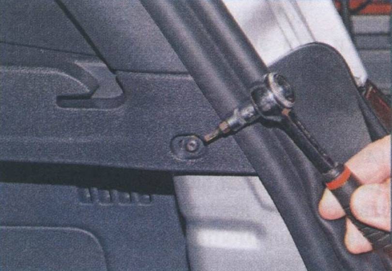 6. Переходим в багажник. Откручиваем два винта крепежа обшивки.