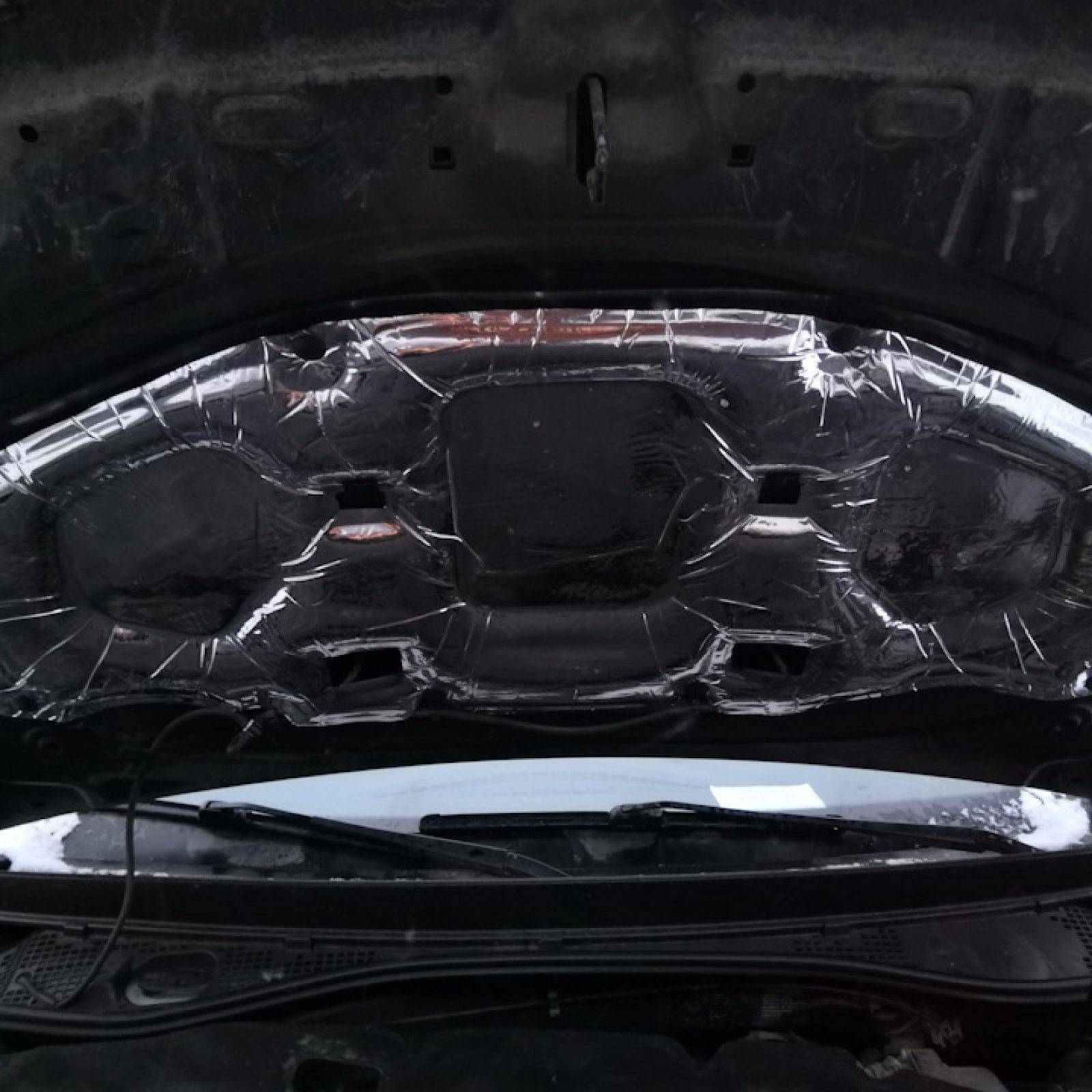 | Капот | Оригинальный шумоизоляционный материал и внештатный вибропласт М1 |