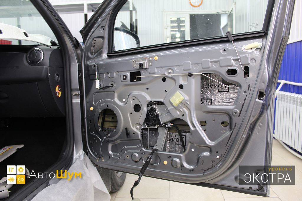 Двери наиболее подверженный шуму элемент, поскольку всё, что вылетает с передних колес, попадает именно сюда. Все грязь и твердые предметы ударяются о каркас, что создает посторонние звуки. Для того, чтобы установить шумку придется разобрать дверь. Как это сделать? Рассмотрим процесс: