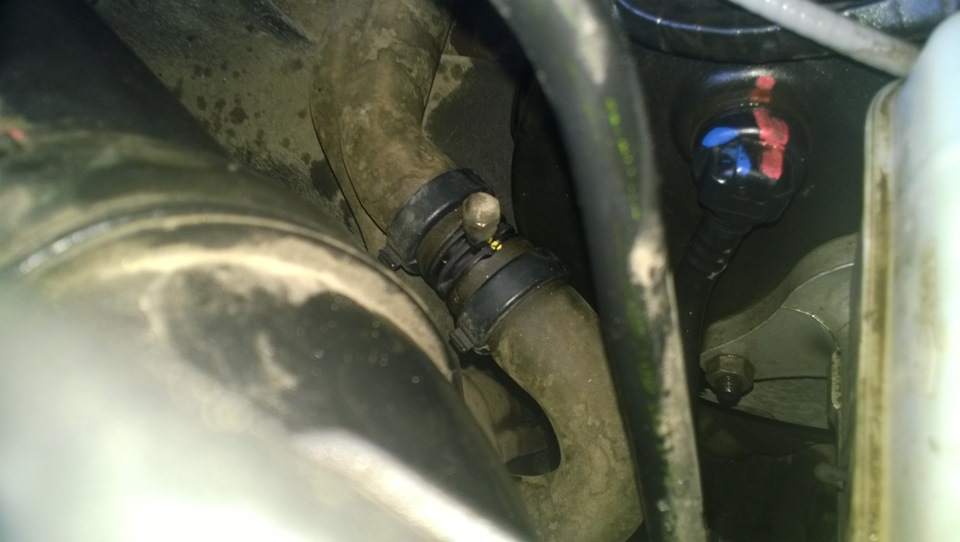 - сжав пассатижами загнутые ушки хомута расширительного бачка, сдвиньте его и снимите шланг с бачка;