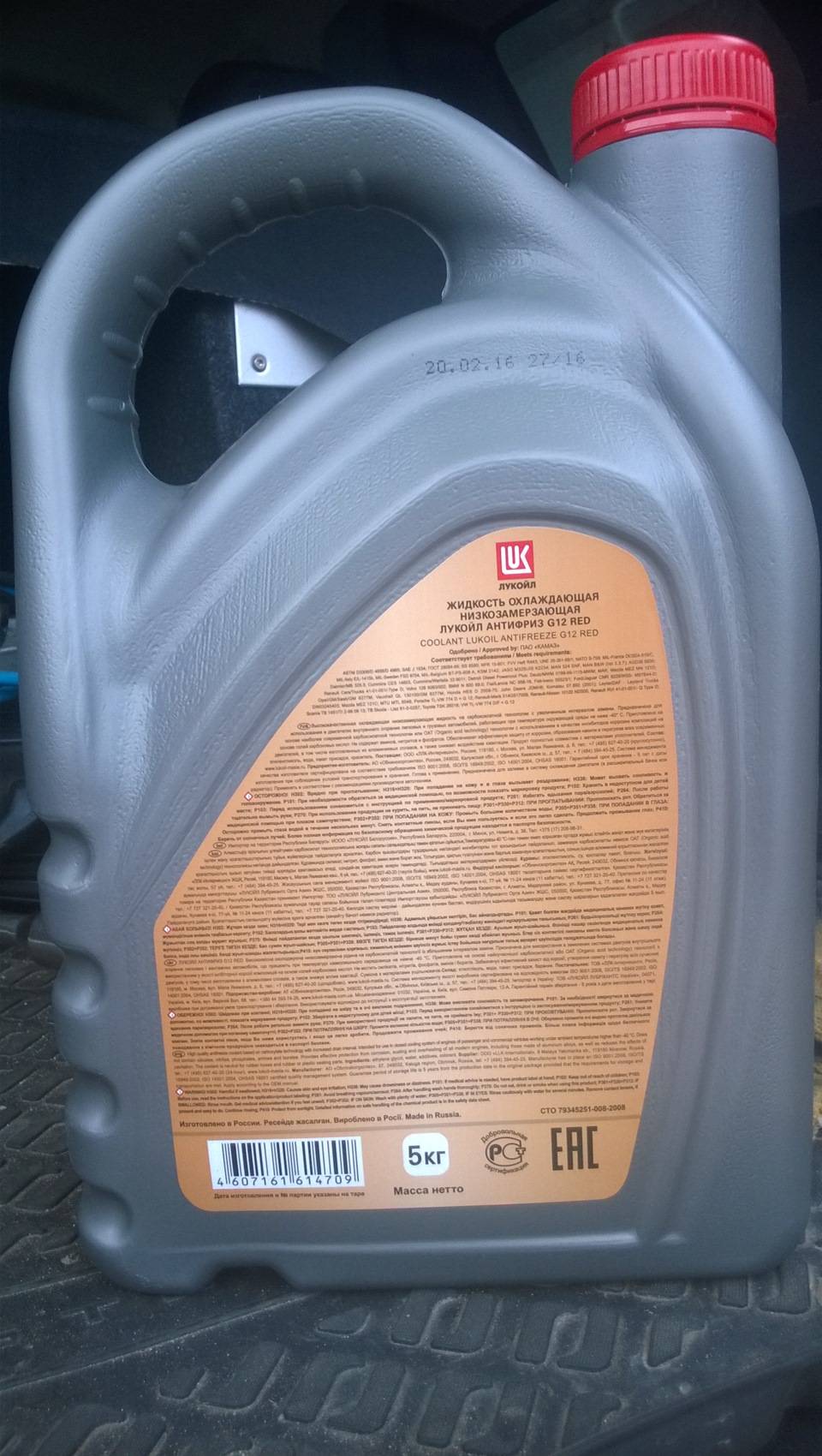 Антифриз было решено обновить по максимуму возможного, т.к. после трех лет официалами рекомендуется полная замена.После прочтения статьи по аналогам антифриза для Renault здесь, а также благодаря испытаниям проведенным Olegmois здесь, выбор пал на Лукойол G12 RED, купленным на брэндовой (не франчайзинг) заправке, за 600 рублей с копейками — 5 кг.