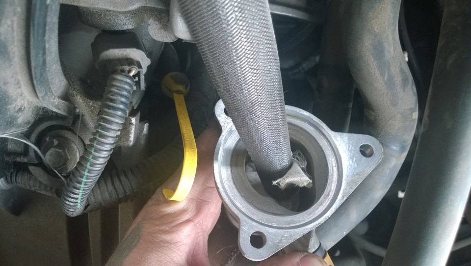 Термостат уплотняется резиновым кольцом. При снятии его проверьте техническое состояние. На кольце не должны быть трещины, изломы, оно должно быть эластично.