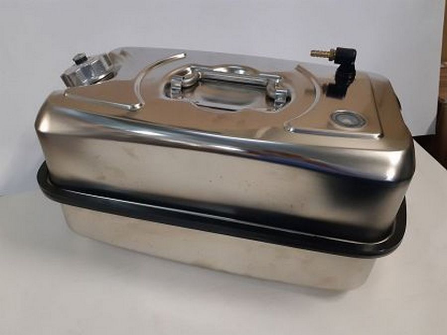 Это неплохая модель для малолитражных легковых автомобилей. Благодаря своей компактности ее можно разместить в любой части авто. Корпус бака выполнен из нержавеющей стали и имеет крышку – «елочку». Соединительные швы защищены резиновыми накладками.