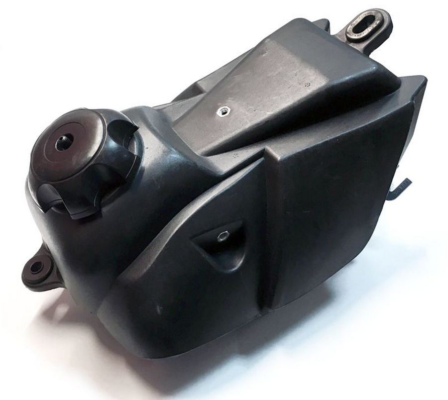 Второе — бензобак должен быть прочным. До 2005 года пластиковые баки практически не использовались, поскольку их производители не могли обеспечить достаточную плотность и герметичность, в том числе и из-за испарения топлива. Происходили разрывы патрубков, горловины и других элементов. Из-за этого и применялись более прочные металлические и алюминиевые конструкции. Сейчас же для бензобак используется пластик высокого качества (обычно в 6-8 слоев). Горловина исполняется из металла, а ее крепление происходит через резиновые “переходники”, тем самым удается добиться прочности конструкции.