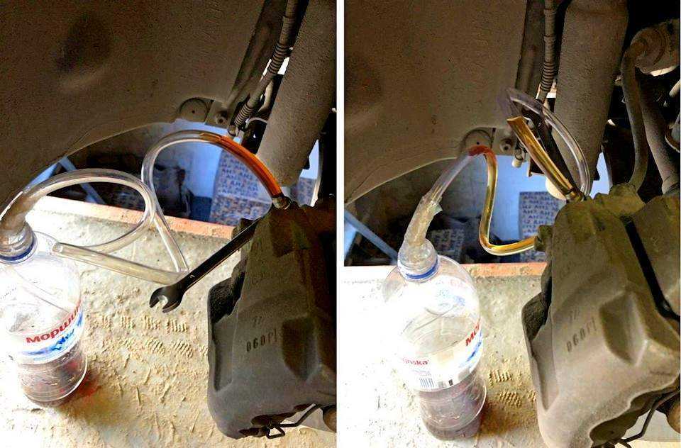 Для достижения хорошего результата, потребуется помощник, с которым сначала надо прокачать тормозную систему передних колес, после — задних.