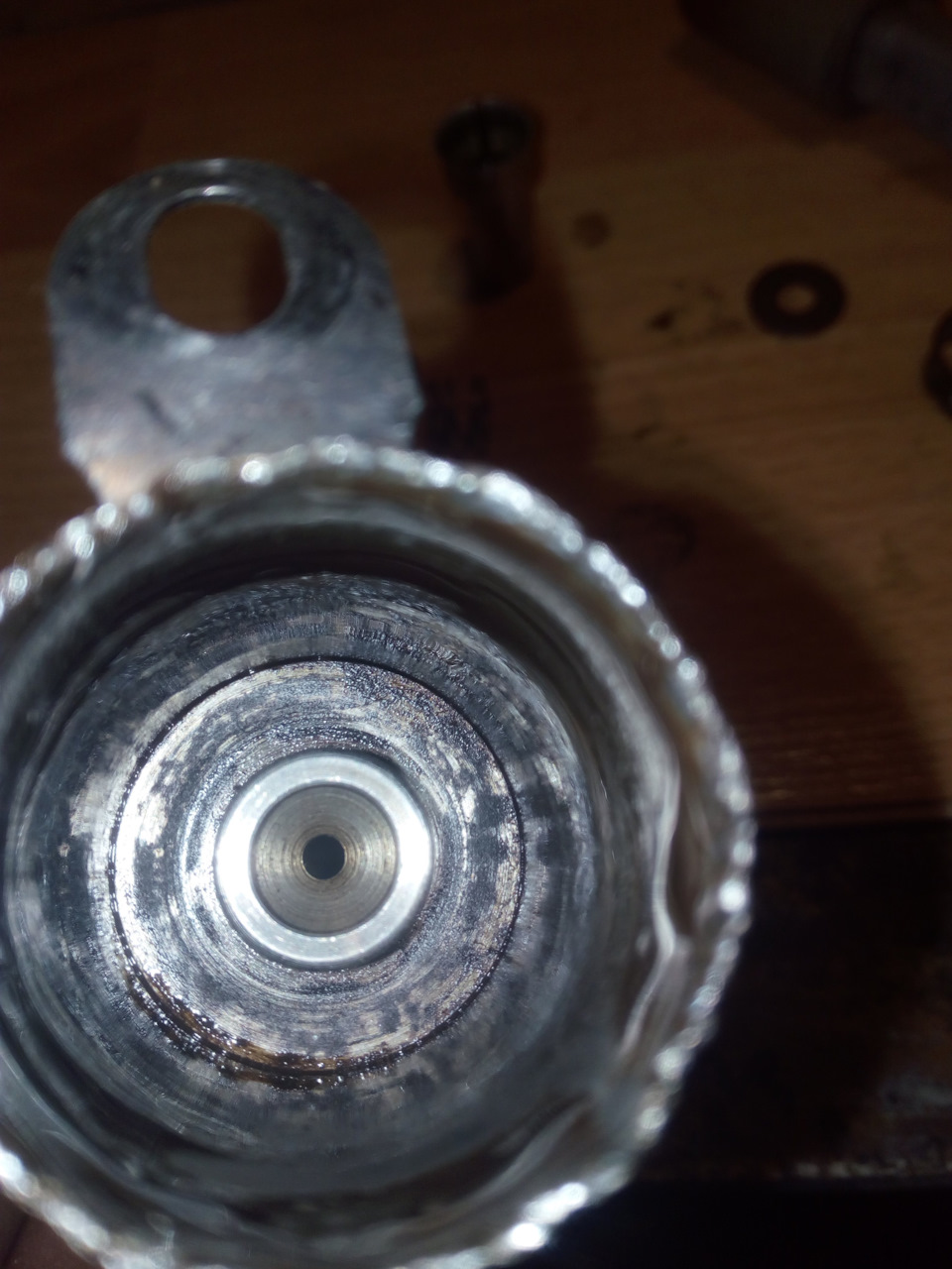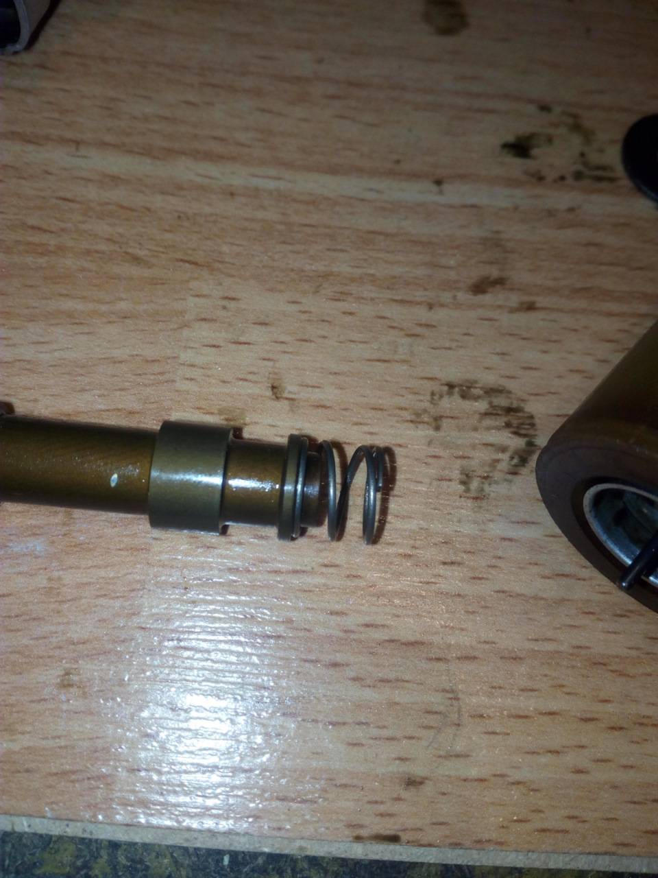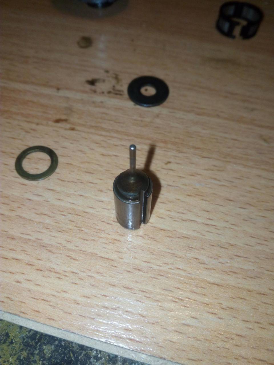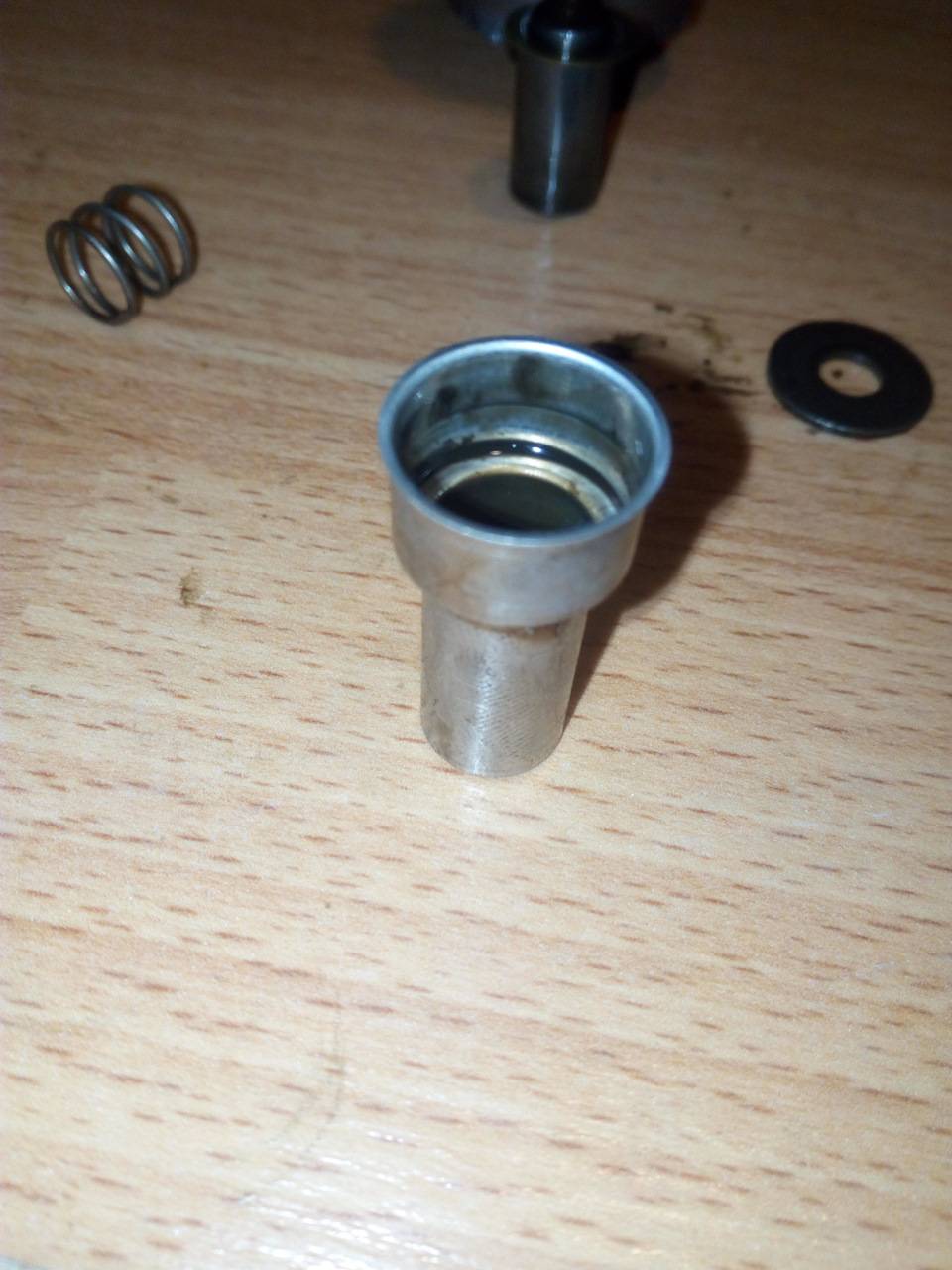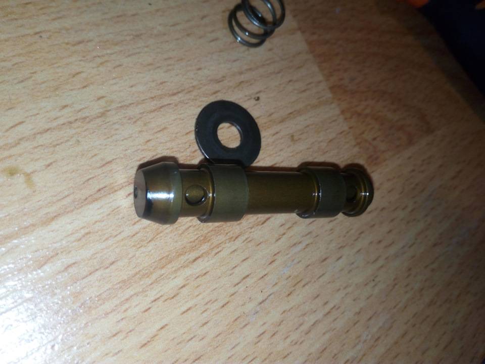 Он легко выходит из клапана. На торцах имеет отверстия: одно сквозное (меньшего диаметра) и второе (большего диаметра) не сквозное, но с выходом на отверстия на боковой его части.