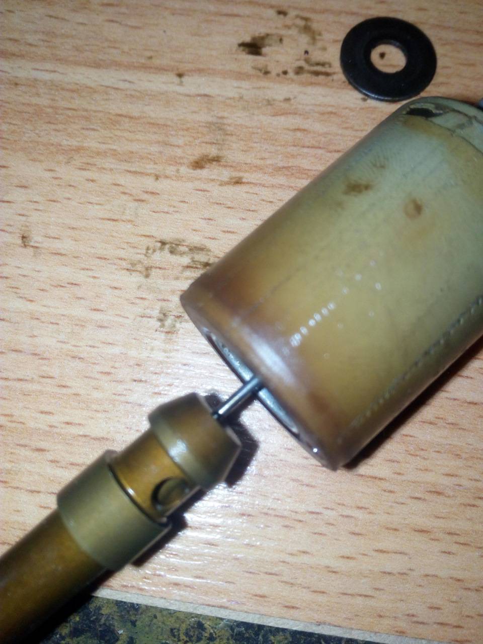 Внутри, там, где работает шток, «на дне» имеется тонкий металлический усик, который воздействует на шток, приводя его в движение.