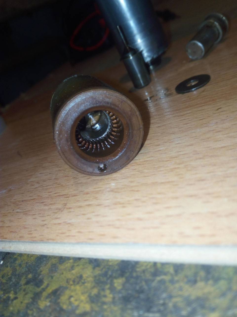 Давненько уже лежит в закромах старый неисправный э/м клапан фазорегулятора. Неисправность в плоскости электрики, а именно, не верные показатели сопротивления на клеммах.Лежит давно. Решил перебрать.Тема не новая, но интересная.