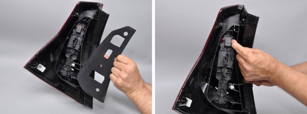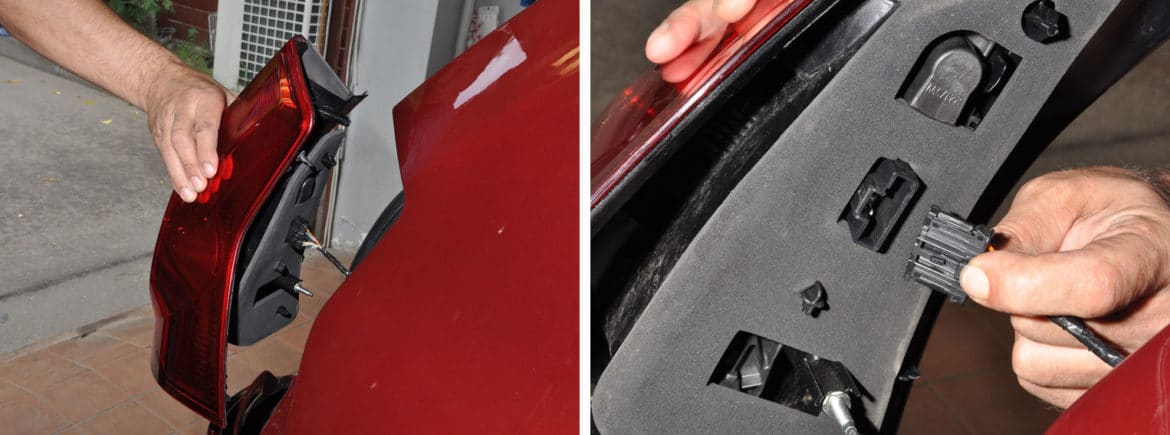 Получаем доступ к фонарю. Он крепится при помощи двух защелок, расположенных по бокам. Отжимаем их и снимаем стоп-сигнал.