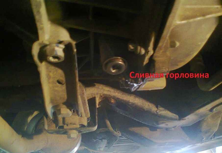 Смазка последнего производится маслом из трансмиссии. Следовательно, перед началом работ скручивайте сливную пробку на коробке передач и дожидайтесь слива смазывающей жидкости. Обязательно подставляйте какую-то емкость, чтобы исключить попадание масла в землю.