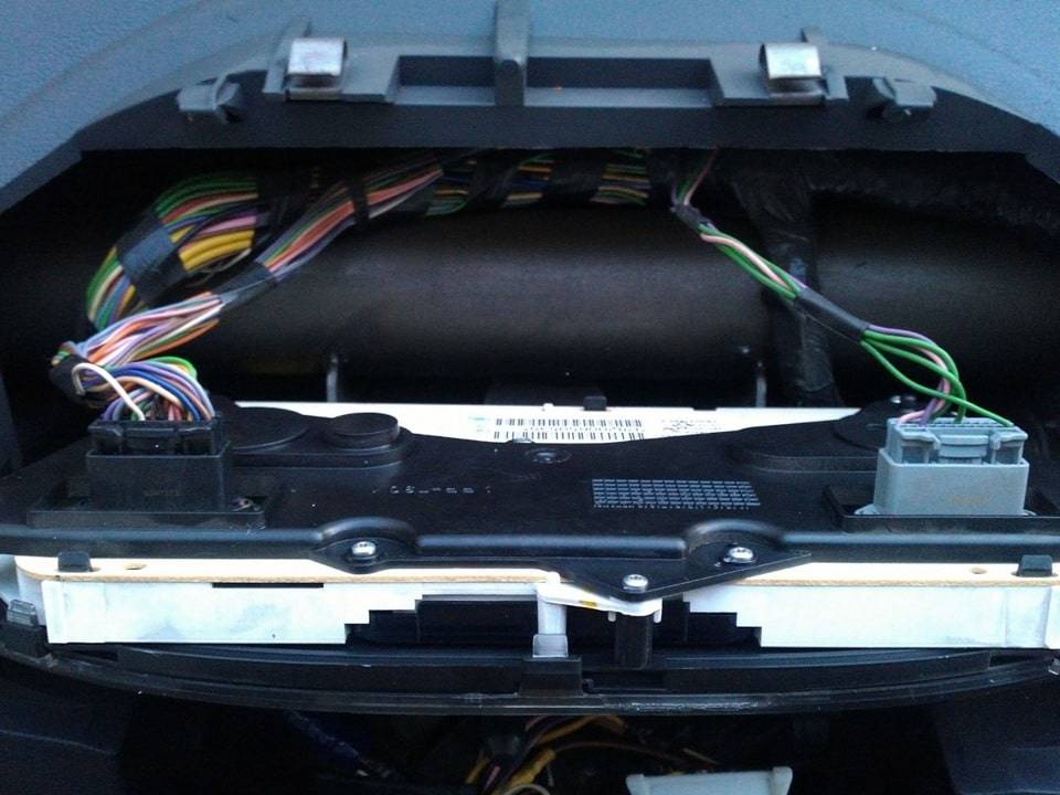 Отсоединяем клемы проводов круиза и парктроника.Нижнюю «губу» снимаем аналогично подцепив лопаткой снизу. Когда отщелкните, то нужно вынимать ее вниз.