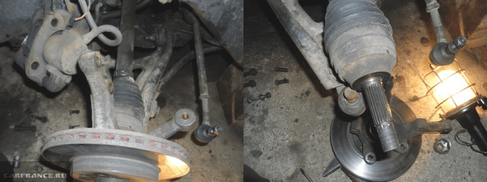 По внутреннему элементу ШРУСа через брусок ударяют молотком. Разъединить его с осью по-другому не получится.