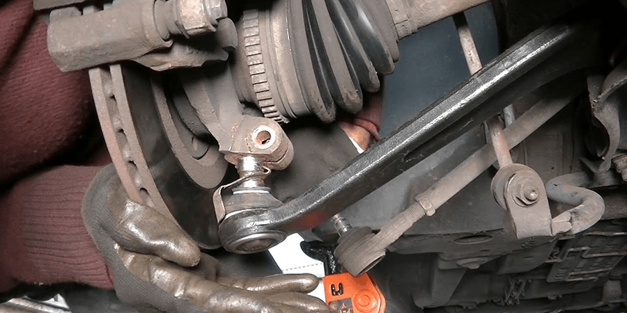 - Следующий шаг – отвинтить гайку крепления и выпрессовать палец нижней шаровой опоры из поворотного кулака.