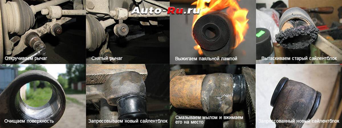 - добираемся, наконец, до сайлентблока, извлекаем его и меняем на новый;