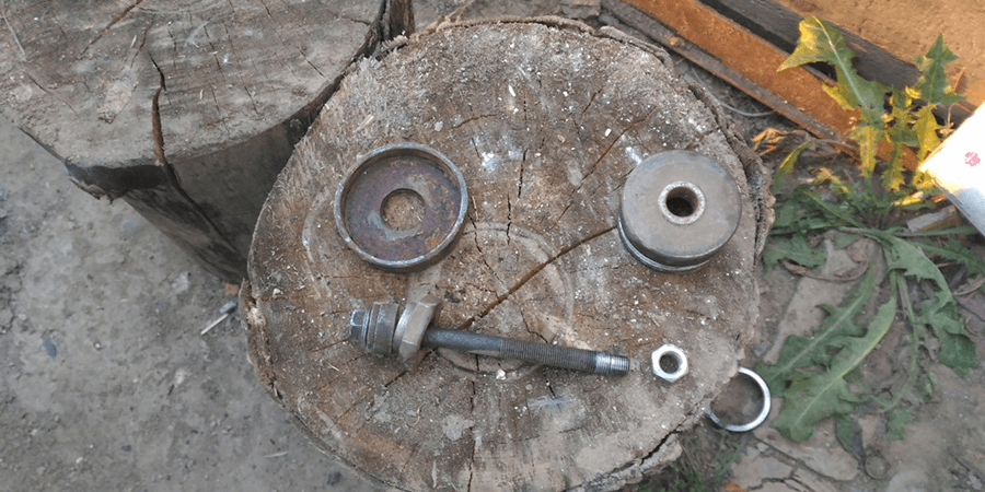 - Установите в рычаг детали в следующей последовательности: шайба, гайка, оправка, шайба и финальная гайка.