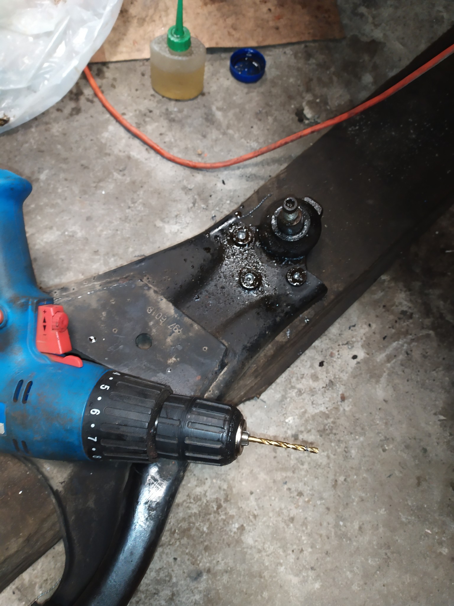 Шаровая опора, как мы видим, закреплена на заклепках. Они высверливаются: