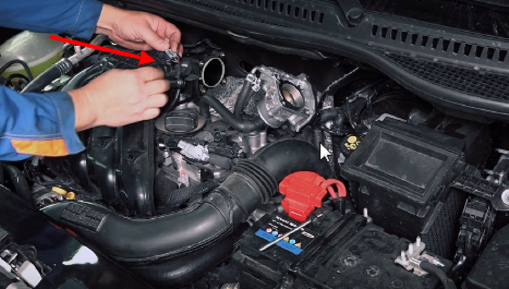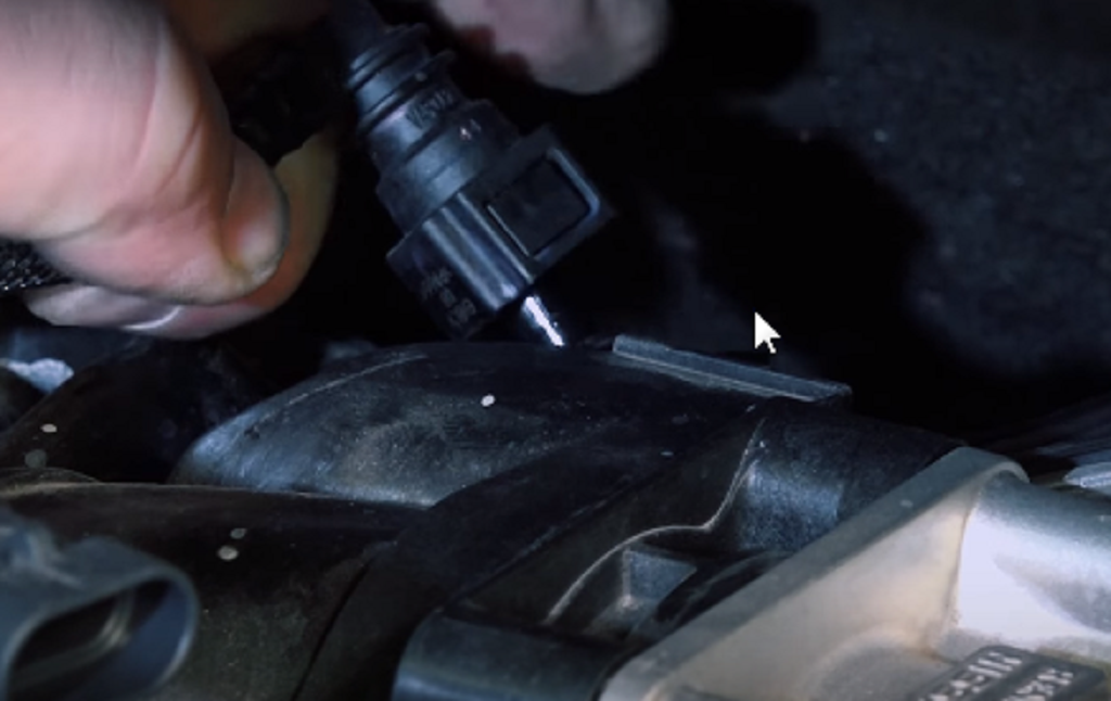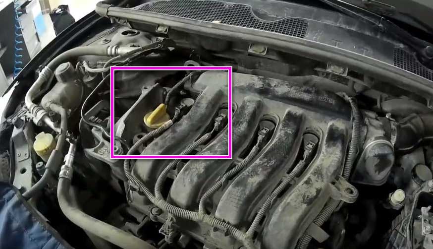 Следующий шаг при самостоятельной замене свечей в Рено Каптур – отсоединение штекеров датчика давления и температурного датчика. Далее требуется снять вакуумный шланг, а также отсоединить шланг, идущий от клапанной крышки к впускному коллектору.