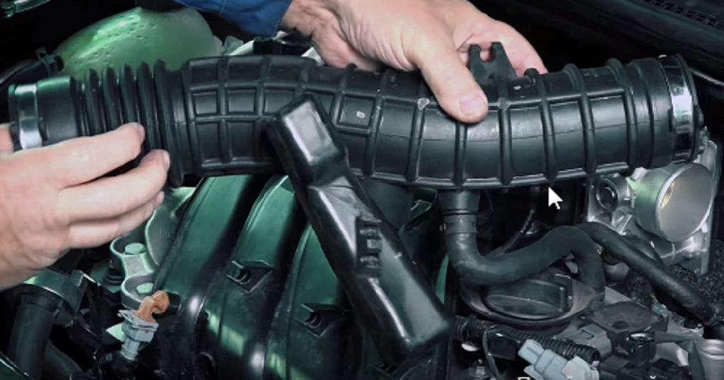 Для этого достаточно просто отщелкнуть зажимы фиксатора и отвести ее в сторону. Далее нужно снять сам воздушный патрубок, попутно отсоединив от него вакуумный шланг. Чтобы разжать хомут на последнем, рекомендуется воспользоваться плоскогубцами или щипцами.