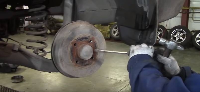 11. Снимаем колесо и сбиваем колпачок с помощью молотка и плоской отвертки.