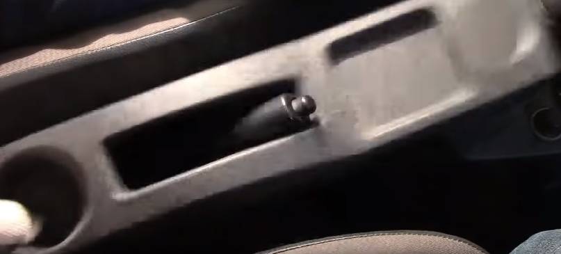 3. Поднимаем ручник вверх и сдергиваем консоль с защелок движением к крышке багажника.