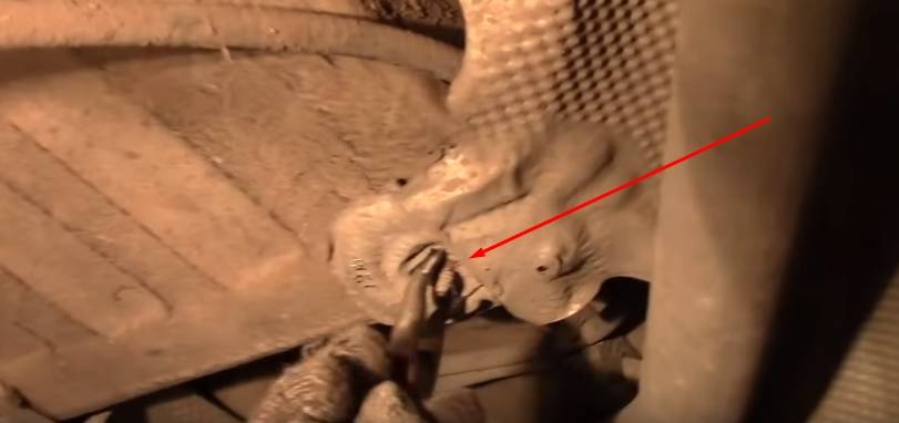 - Теперь переместитесь под днище автомобиля и вытяните тросы из отверстия в основании кузова.