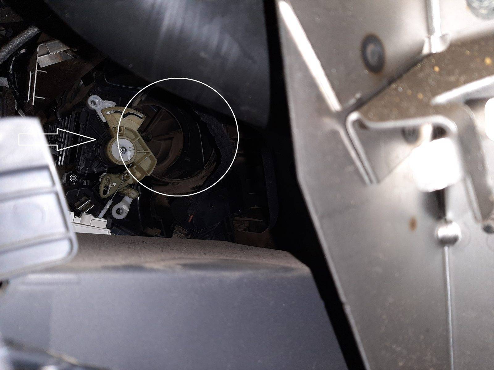 Затем осматриваем поверхность за панелью, чтобы найти корпус вентилятора. Найти его не трудно, он круглый и находится недалеко от фильтра салона.