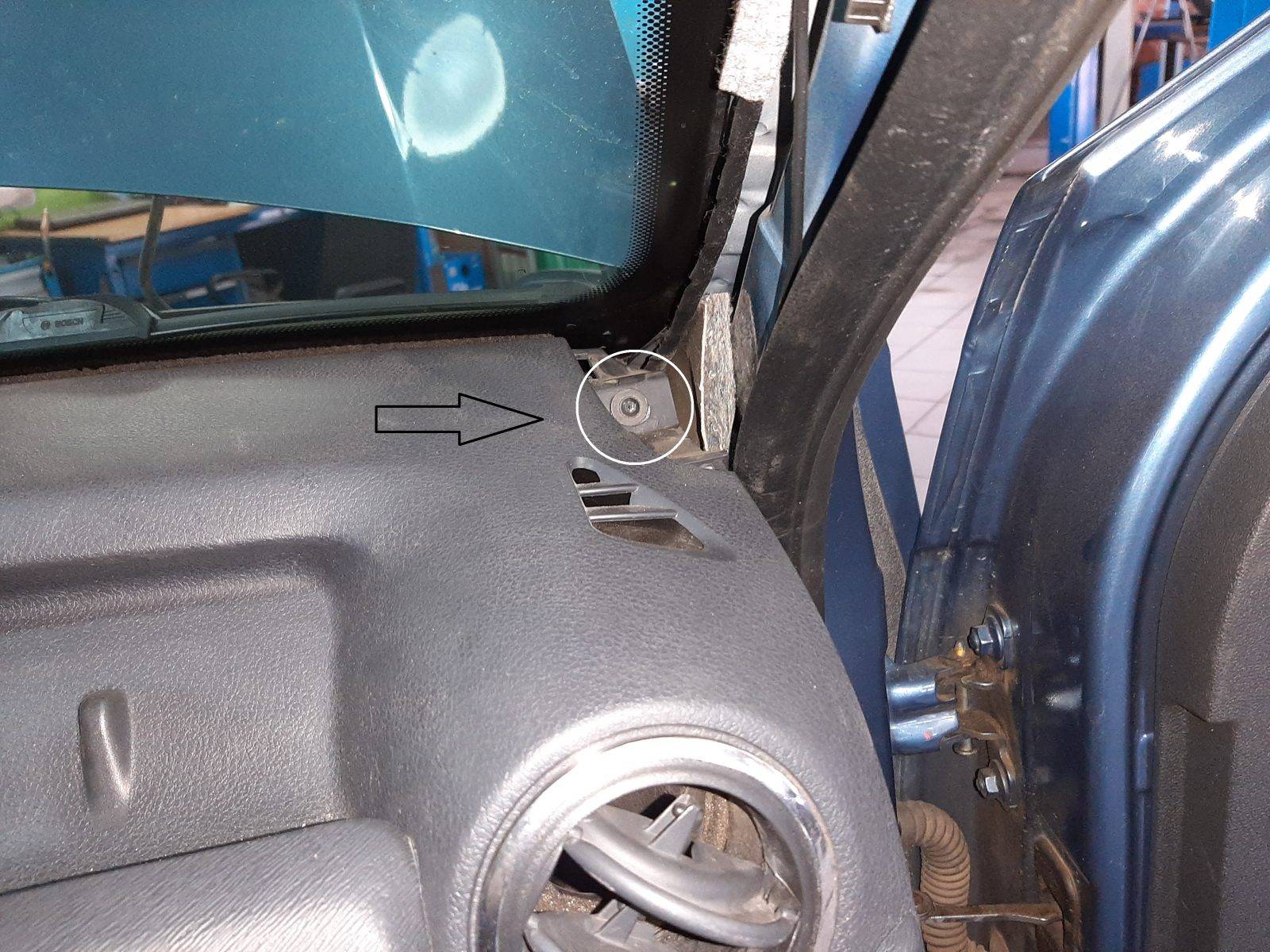Демонтируем боковые накладки возле лобового стекла за ними есть крепления панели.
