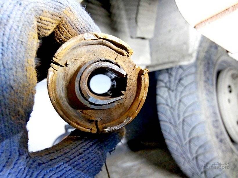 При осмотре обратитt внимание на целостность резиновой втулки, так как именно эта часть больше всего страдает от нагрузок – трещины и разрывов на поверхности быть не должно