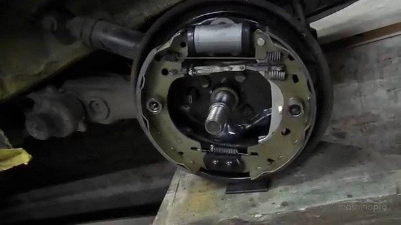 После поднятия одной из сторон, и ослабления всех гаек снимаем колесо и тормозной барабан. После демонтажа, его необходимо очистить от пыли и грязи.