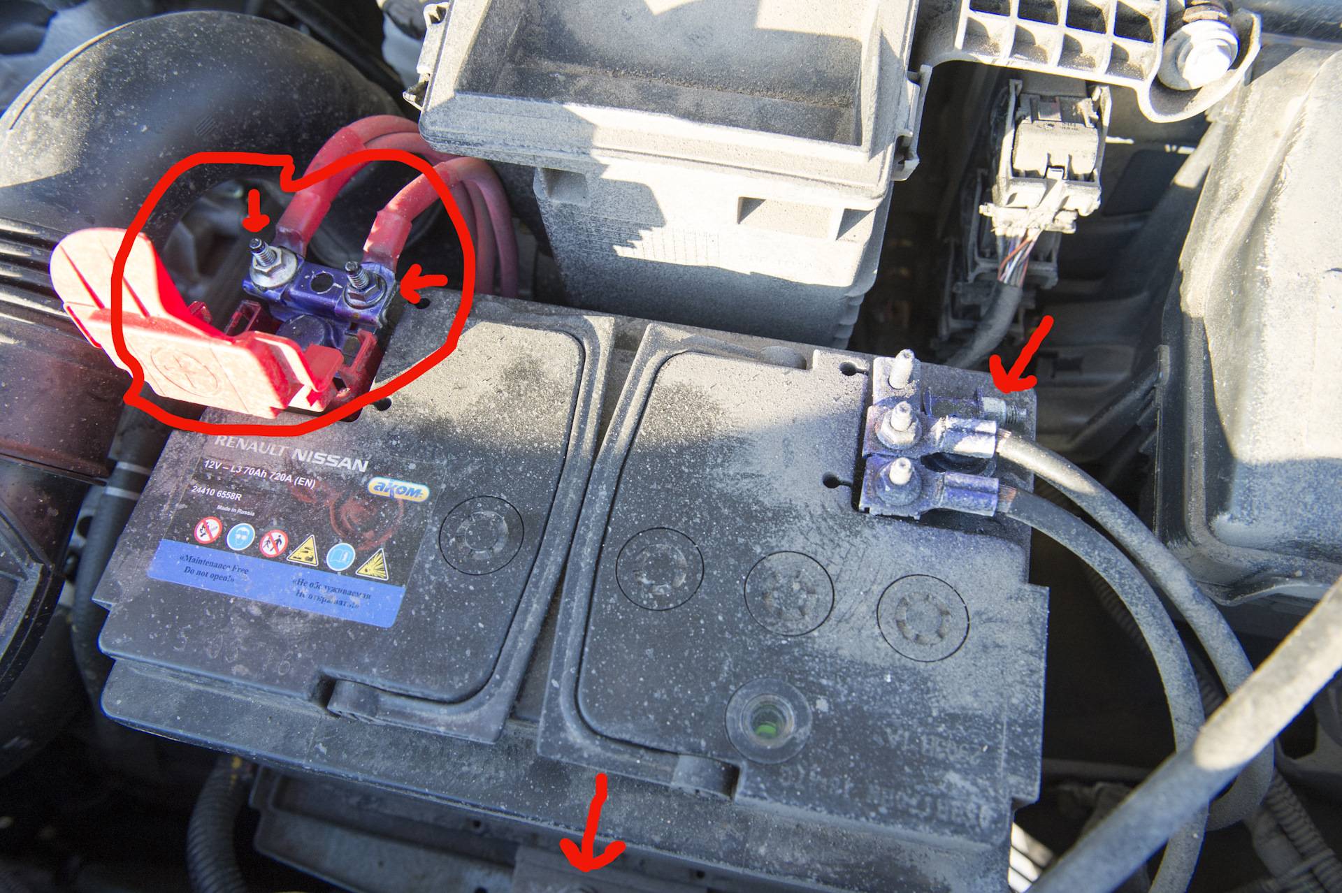 Снятие и установка аккумуляторной батареи Renault Duster
