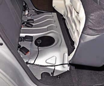 В салоне автомобиля устанавливаем подушку заднего сиденья в вертикальное положение. Поддев шлицевой отверткой…